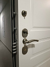 Белая входная дверь сдержанно-классического профиля: ровные канты, аккуратные филёнки и чистый матовый тон дают ощущение порядка в прихожей и не спорят с интерьером. Оптимальна для квартиры или тёплого подъезда: снаружи стойкая порошковая окраска не боится мелких царапин и уборки, внутри — МДФ-панель с тонкой фрезеровкой добавляет тепла и визуальной глубины. Надёжность здесь не на словах: двухсистемный итальянский замок с девиаторами фиксирует полотно в нескольких точках, а противосъёмные ригели на петлевой стороне подстрахуют при любом раскладе. Удобная глазок-линза помогает контролировать вход, мягкий контур уплотнения гасит звуки и сквозняки. Если ищете спокойный дизайн без вычурности и при этом требуете реальной защиты — это как раз тот случай.