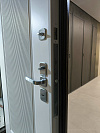 Изнутри белая эмаль с вертикальным рифлением добавляет объёма и делает полотно интерьерным элементом, а не просто железной преградой. Светлая сторона помогает собрать аккуратную прихожую даже в типовой квартире.