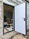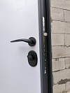 Снаружи — строгий графит, внутри — чистый белый минимализм. Это удобно, когда хочется, чтобы вход со стороны улицы выглядел солидно и немарко, а в прихожей поддерживал светлое пространство и не утяжелял интерьер. Дверь не спорит с отделкой, а просто делает своё дело.
